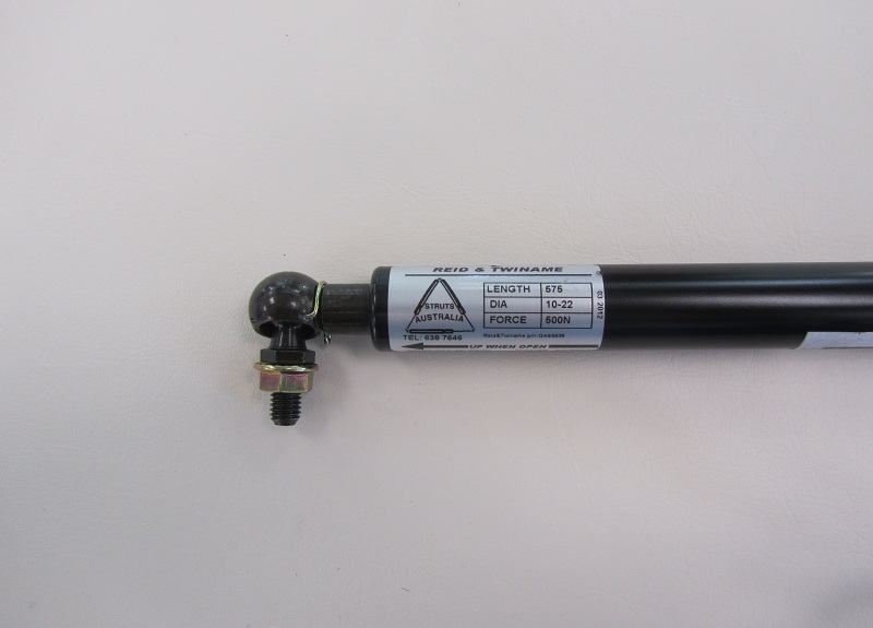 Gas Stay or also known as a Gas Spring, Gas Strut, Length 575mm. Stroke 240mm. Force 500N. Shaft 10mm 22mm cylinder. Various end fittings available. ***Gas stays carry 2yr warranty*** Length of gas stay = H measurement (half the depth of the door from hinge point) + 20% L= mounting distance from hinge (Guide: 405 long = 150mm, 500 long = 200mm, 605 long = 250mm, 700 long = 290mm, H= half the depth of the door from hinge point. G= weight of the door in Newtons (1kg = 10 N) Force = G x H รท L, + 30%, divided by number of stays being used = Newton force..