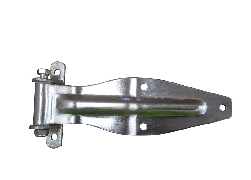 Zinc Coated Mild Steel hinge blade 5mm thick. Length from centre of mount hole to tip = 298mm Seal step = 115mm, Across bush flange = 63mm centre of two holes to front hole centre 130mm. Hinge designed for truck or trailer body doors, either rear or side doors, suitable for trailer applications. Universal left or right hinge.