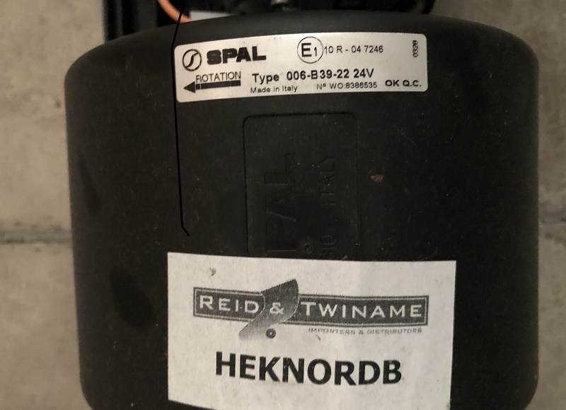 Blower unit replacement for HEKNORD. Air flow 830m3/h. 3 speed fan. Very Long Life, Low Noise Motor. Sealed Ball Bearings. 11,000 hours life (approx). Current draw min 4.5 amps. Max 13.5 amps (extreme conditions). Type 006-B39-22-24V
