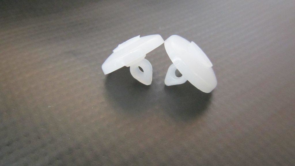 2 piece plastic button. Features strong swivel toggle and non-corrosive fail-safe design. Used for marine, outdoor furniture, automotive and domestic upholstery