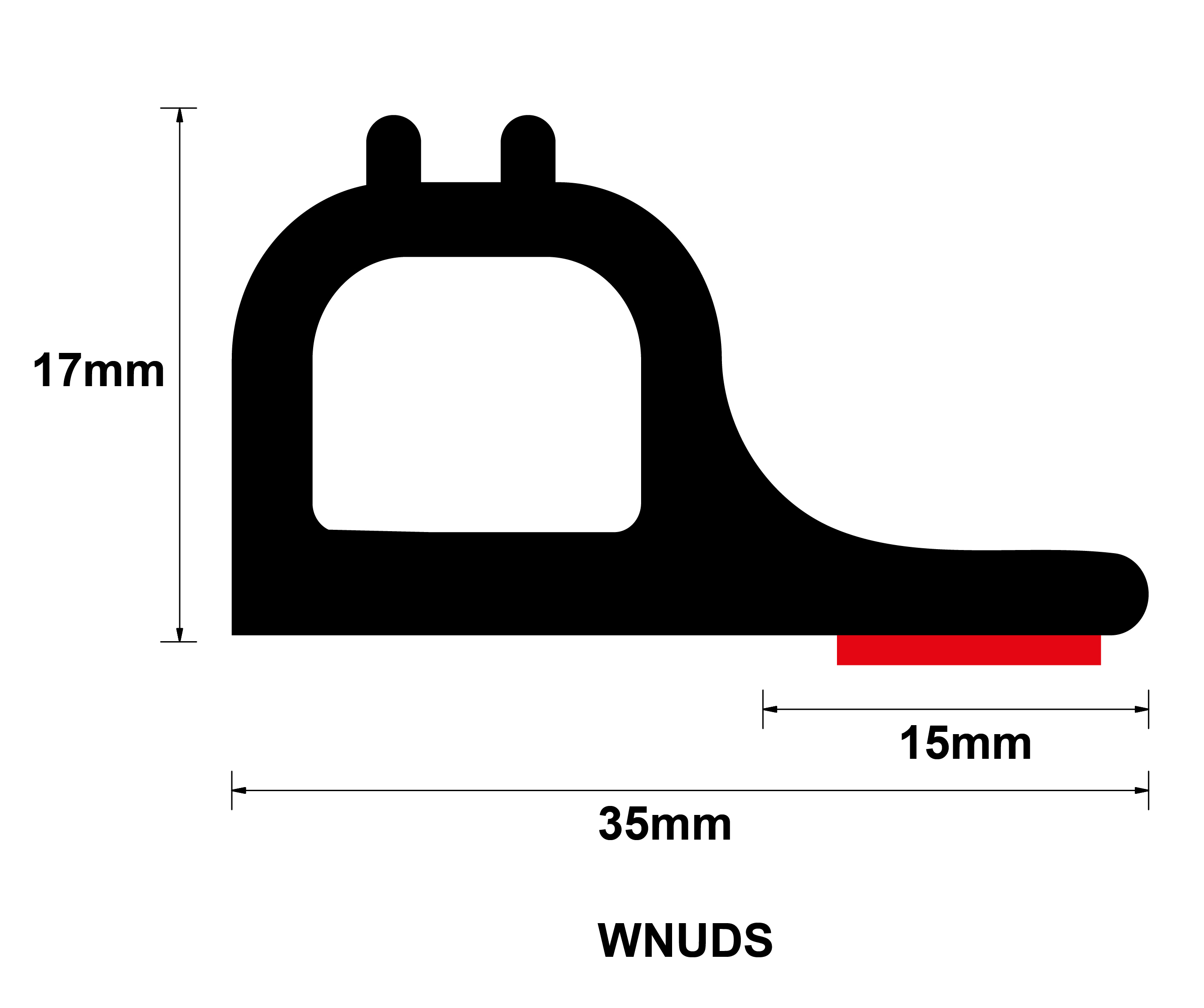 Universal tail gate or door seal with adhesive VHB tape. Sold in 6m lengths. 35mm wide x 17mm high.