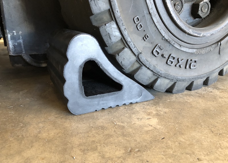 Small wheel chock made from hard wearing EPDM blended rubber. L 160mm x W 150mm x H 120mm