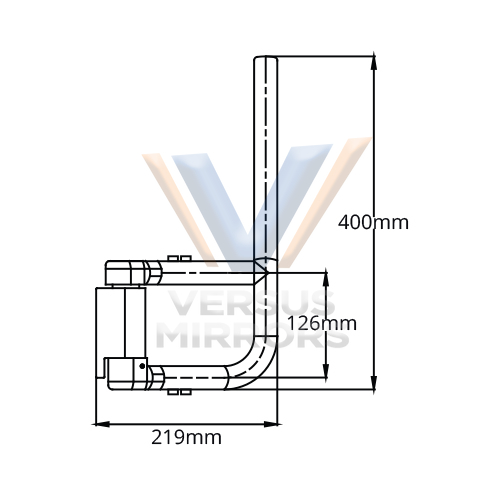 Versus mirror short arm right hand side bottom mount style 219mm x 400mm x 28mm diameter mount. Comes with chassis bracket and 5m of wiring harness.