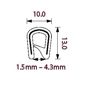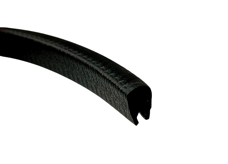 Black marine grade aluminium centered edge trim. Grip range 1.5 - 4.3mm. 50m rolls. Medium push-on PVC extruded edge trim. Suitable to cover raw edges of fibreglasss and metal.