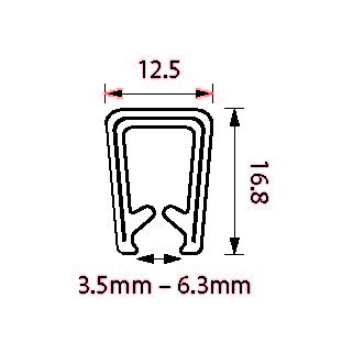 White marine grade aluminium centered edge trim. Grip range 3.5 - 6.3mm. 50m rolls. Large push-on PVC extruded edge trim. Suitable to cover raw edges of fibreglasss and metal.