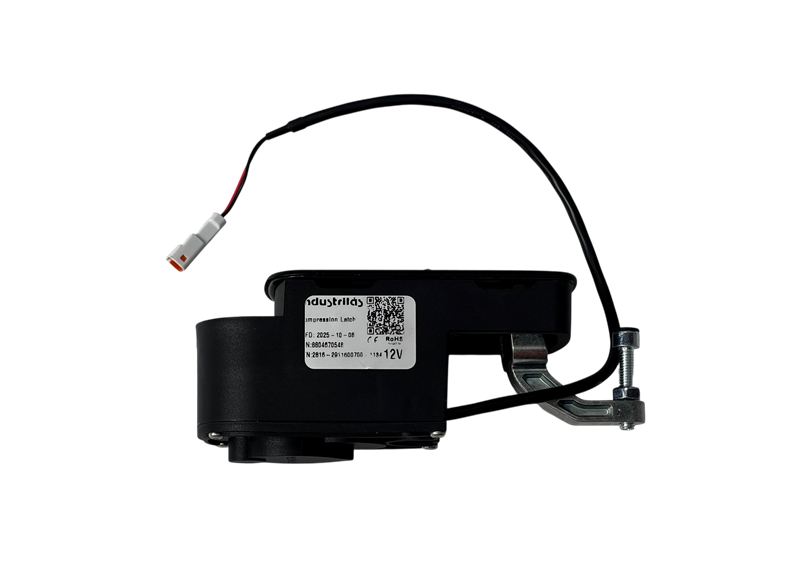 Industrilas 12v central locking flush mounted compression latch sealed against water and dust, adjustable grip range 11 - 28mm. Suitable for panel/door thickness up to 7mm. IP66 water and dust protection.