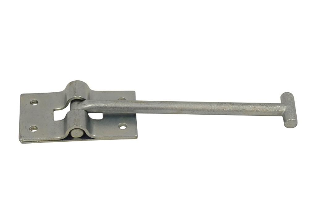 Robust zinc plated cast malleable iron hook with zinc plated pressed steel back plate. Striker arm 150mm long to suit catch plate CT121. Base 45mmW x 77mmL.